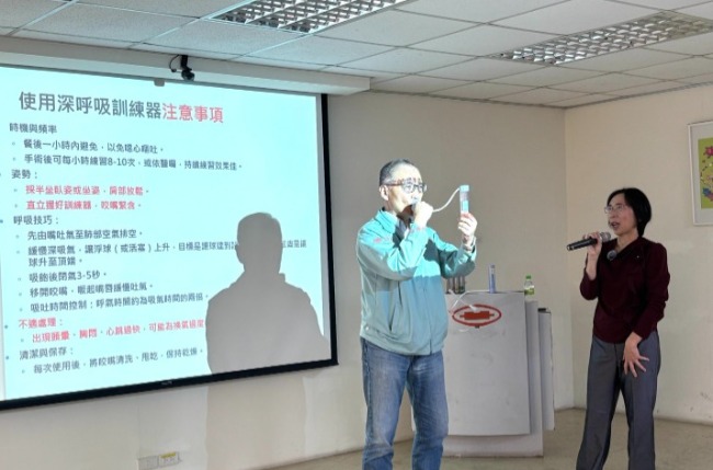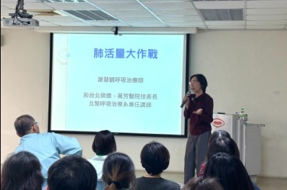 邀請「前台北榮總、萬芳醫院技術長、現任北醫兼任講師」的謝慧觀呼吸治療師,舉辦《肺活量大作戰》健康講座,現場不只在聽,更是全場一起動起來。